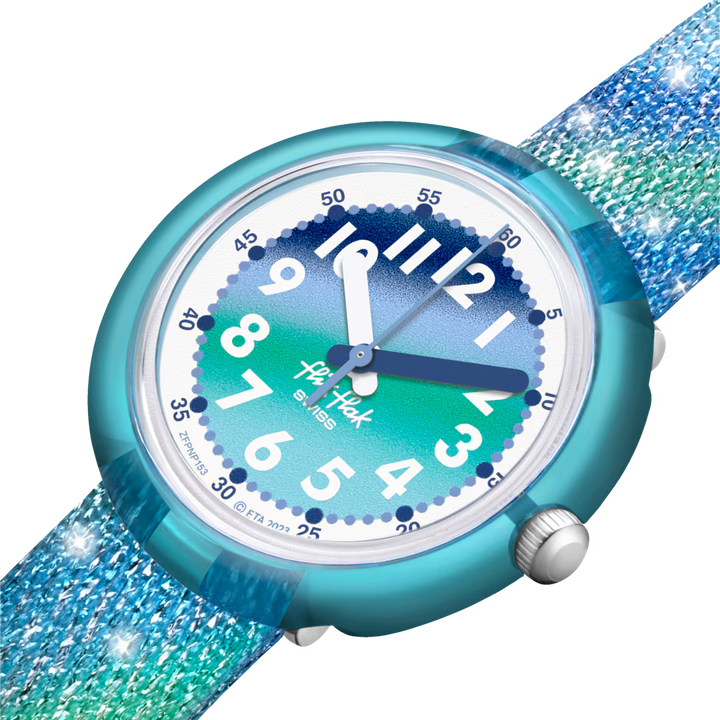 Ceasul educational FROZEN RAINBOW este o explozie verde si albastra de sclipici pentru privire! Un cadou minunat pentru copii care ii va ajuta sa invete sa citeasca ora.