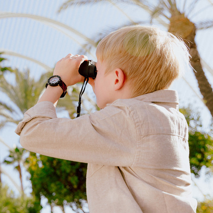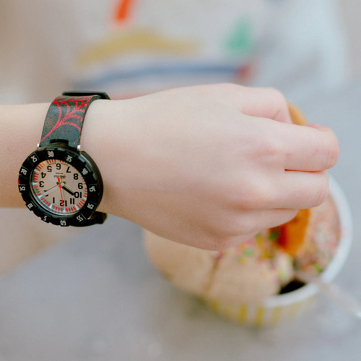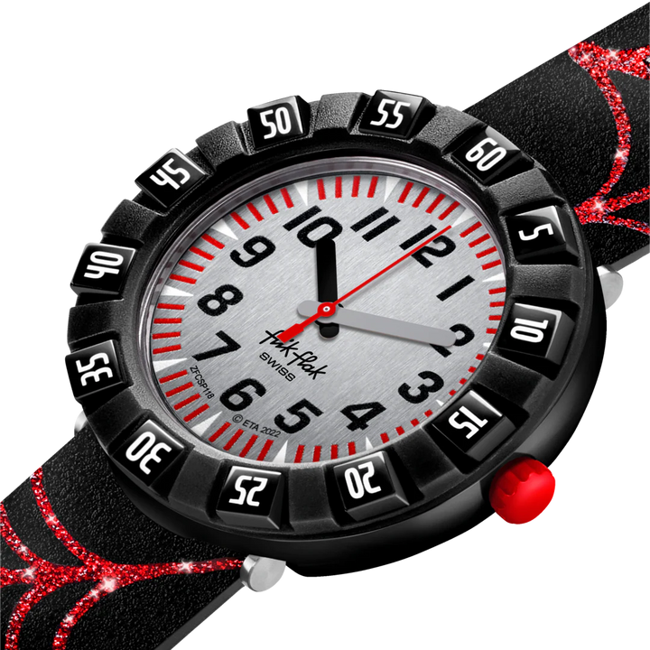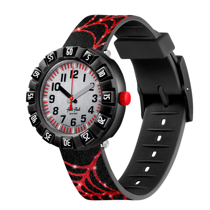 Panze de paianjen rosii sunt gravate pe cureaua lucioasa cu imprimeu metalic a ceasului WEBAXUS pentru copii. Cei mici vor invata sa citeasca ora cu ajutorul acestui cadou educativ.