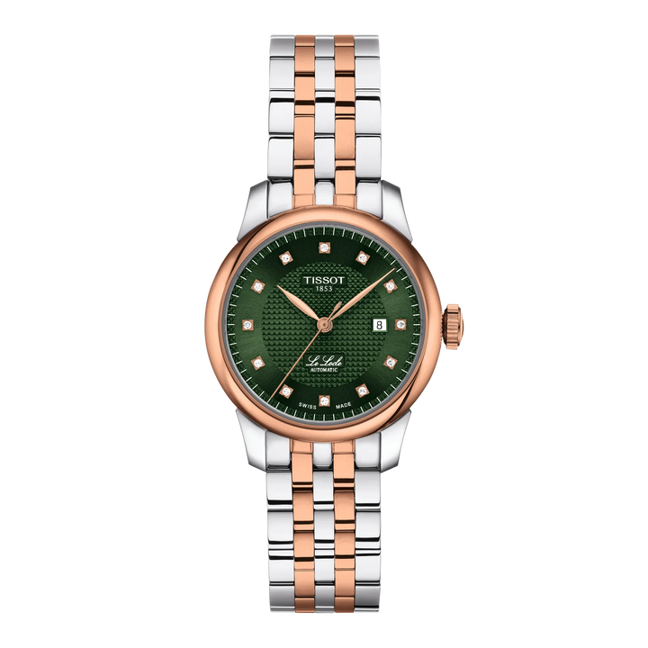 Acest model prezinta un cadran verde, inlocuind indicii romani cu opt diamante stralucitoare, si este echipat cu bratari interschimbabile cu eliberare rapida. Toate ceasurile Le Locle prezinta frumosul cadran „clous de Paris” guilloche in forma de mici piramide: un detaliu care face cu adevarat diferenta. Interactiunea dintre suprafetele lustruite si cele periate ale zalei creeaza un ritm vizual captivant, surprinzand lumina la fiecare miscare. Acest ceas intruchipeaza farmecul mostenirii elvetiene, cu numele „Le Locle” inscriptionat in italice pe fata ceasului, adaugand o nota sofisticata designului.