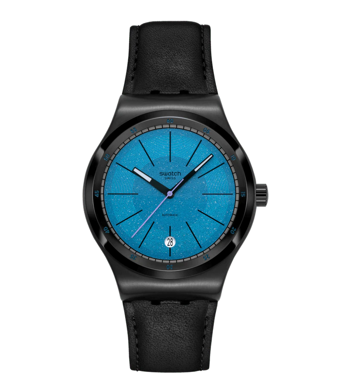 Acest ceas automat are un cadran care isi schimbă culoarea din albastru in mov, cu efect sclipitor, marcaje orare tiparite cu negru, o margine mov deschis cu marcaje ale minutelor tiparite cu negru si o fereastra pentru data la ora 6. Limbile orara si minutarul negre, care stralucesc in intuneric, impreuna cu limba secundara mov deschis indica timpul. Carcasa din otel inoxidabil periat cu PVD negru ofera o vedere a mecanismului pe spate si este completata de o luneta din otel inoxidabil polisat cu PVD negru si cifre albastre gravate. Cureaua neagra din piele cu bucle asortate si catarama jumatate din otel inoxidabil periat cu PVD negru completeaza aspectul.