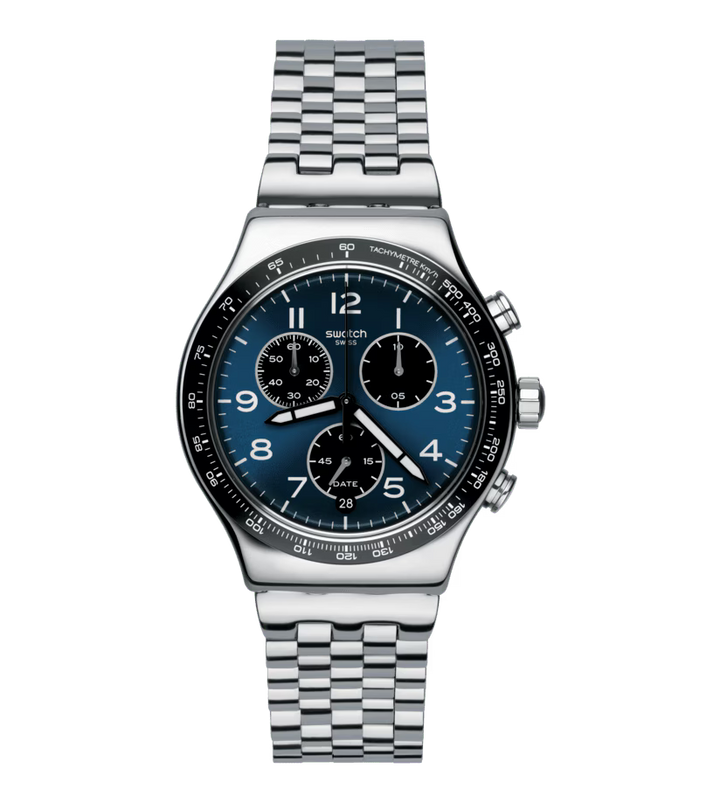 Un design atemporal pentru barbatul mereu in miscare, ceasul BOXENGASSE (YVS423GC) are un cadran albastru satinat, cu cifre arabe albe si detalii in argintiu si alb, trei subcadrane si fereastra pentru data la ora 6. Stilul sofisticat este completat de o carcasa din otel inoxidabil polisat si o luneta neagra, iar bratara din otel inoxidabil cu zale clasice finalizeaza designul elegant.