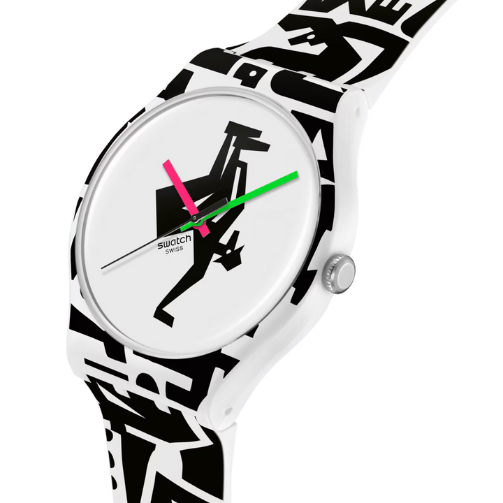 Acest ceas distractiv a fost creat în colaborare cu artistul și designerul grafic Grotesk. Cadranul alb prezintă imprimeu negru și o limbă a orelor roz, o limbă a minutelor verde și o limbă a secundelor neagră, toate sub un geam biosursat. Designul negru este imprimat pe cureaua albă mată, pe inel și pe carcasa biosursată. O cataramă albă mată completează ceasul.