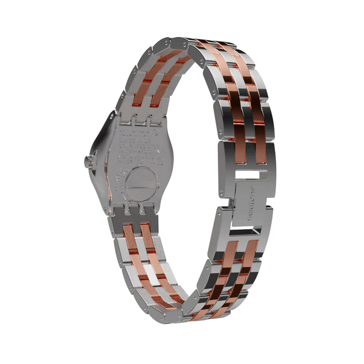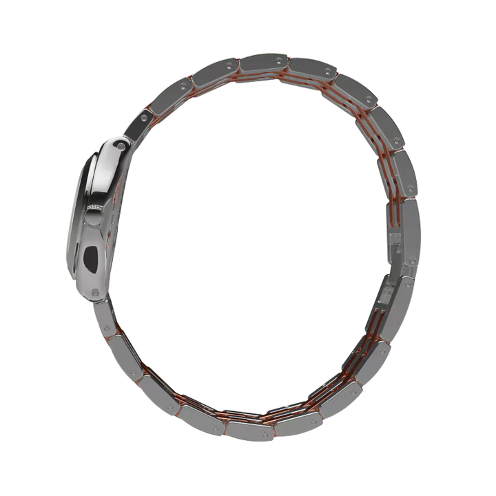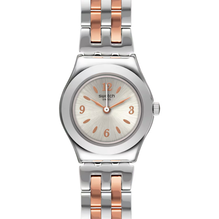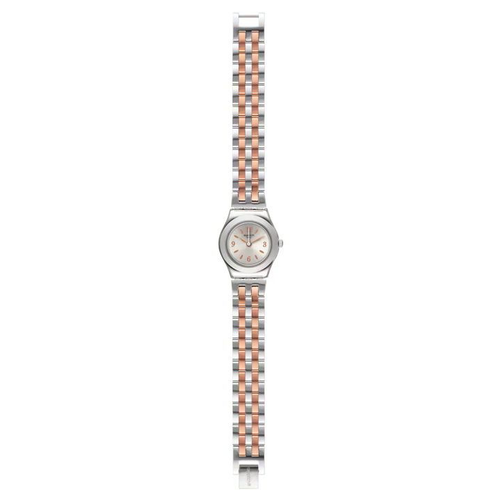 MINIMIX (YSS308G) este doamna castelului. Acest design elegant si clasic vorbeste limbajul orologeriei traditionale printr-un stil delicat si discret. Cadranul argintiu cu finisaj periat si imprimeu in nuante aurii-roz este completat de o carcasa si un bezel din otel inoxidabil polisat. Modelul atemporal este prezentat cu o bratara reglabila din otel inoxidabil polisat, cu elemente PVD in nuante aurii-roz.