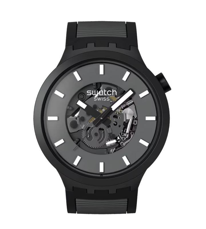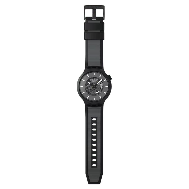 Acest ceas supradimensionat iese în evidență prin cadranul său deschis gri închis, cu indici 3D imprimați în alb, limbi de oră și minute negre cu efect fosforescent, o limbă de secunde neagră și elemente ale mecanismului gri închis, toate sub un geam biosursat. Carcasa mată neagră biosursată, cu bezel asortat, este completată de o curea neagră mată cu textură gri închis, bucle negre mate și o cataramă semilună mată neagră.