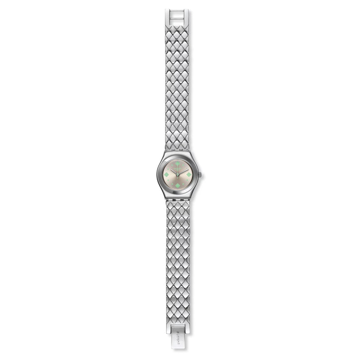 Atentia la detalii inseamna totul. PETITE REINE (YSS291G) are indexuri verzi subtile pe un cadran argintiu periat si o curea din otel inoxidabil polisat, cu un model tesut care te invita sa privesti mai indeaproape de fiecare data cand il porti. Surprinde simturile cu un rafinament subtil.