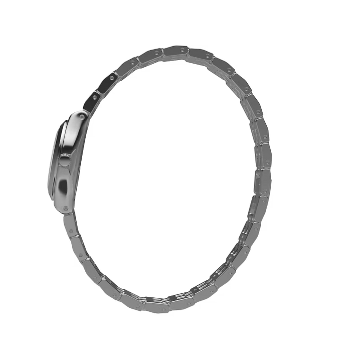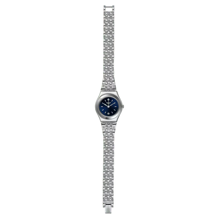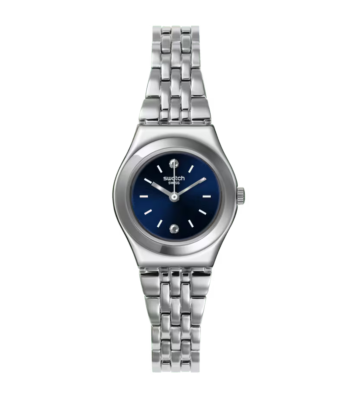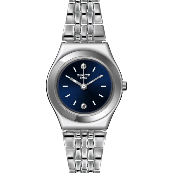 Rafinament subtil. Eleganta fara efort. SLOANE (YSS288G) are un cadran albastru cu finisaj satinat in forma de raze de soare, cu indici albi minimali si doua cristale transparente. Curat si clasic, acest model este completat de otel inoxidabil polisat, de la rama pana la carcasa si pana la cureaua reglabila, cu zale fine si legaturi atent lucrate.