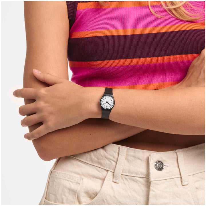 Elegant si clasic, SOMETHING NEW (LB153) ne reaminteste ca stilurile atemporale sunt cele mai la moda. Cureaua neagra din polimer se asorteaza perfect cu carcasa si cu imprimeul de pe cadranul alb.