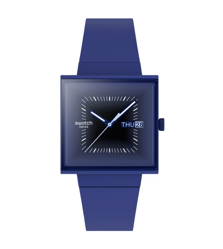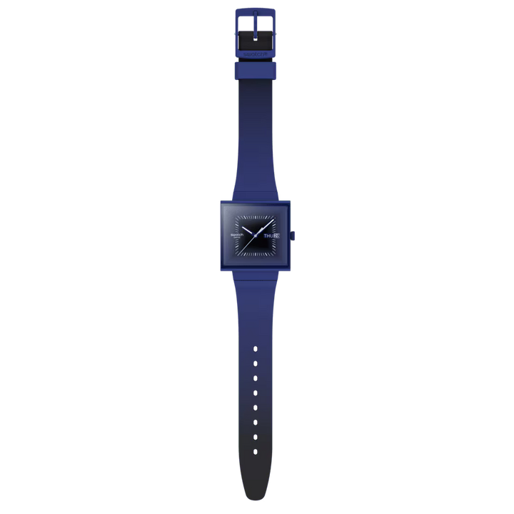 Carcasa patrata, albastru inchis mat din Bioceramic are sticla biosursă de la o margine la alta, care ofera o vedere laterala a pistei de minute imprimate in albastru deschis. Cadranul patrat, cu gradient negru si albastru inchis, are indicatoare de ora si minut in albastru inchis cu efect fosforescent, o secunda in albastru deschis si un indicator zi-data in albastru inchis si albastru deschis la ora 3. Cadranul si carcasa sunt completate de o curea mata, cu gradient albastru inchis si negru, o bucla albastru inchis mata si o catarama albastru inchis mata.